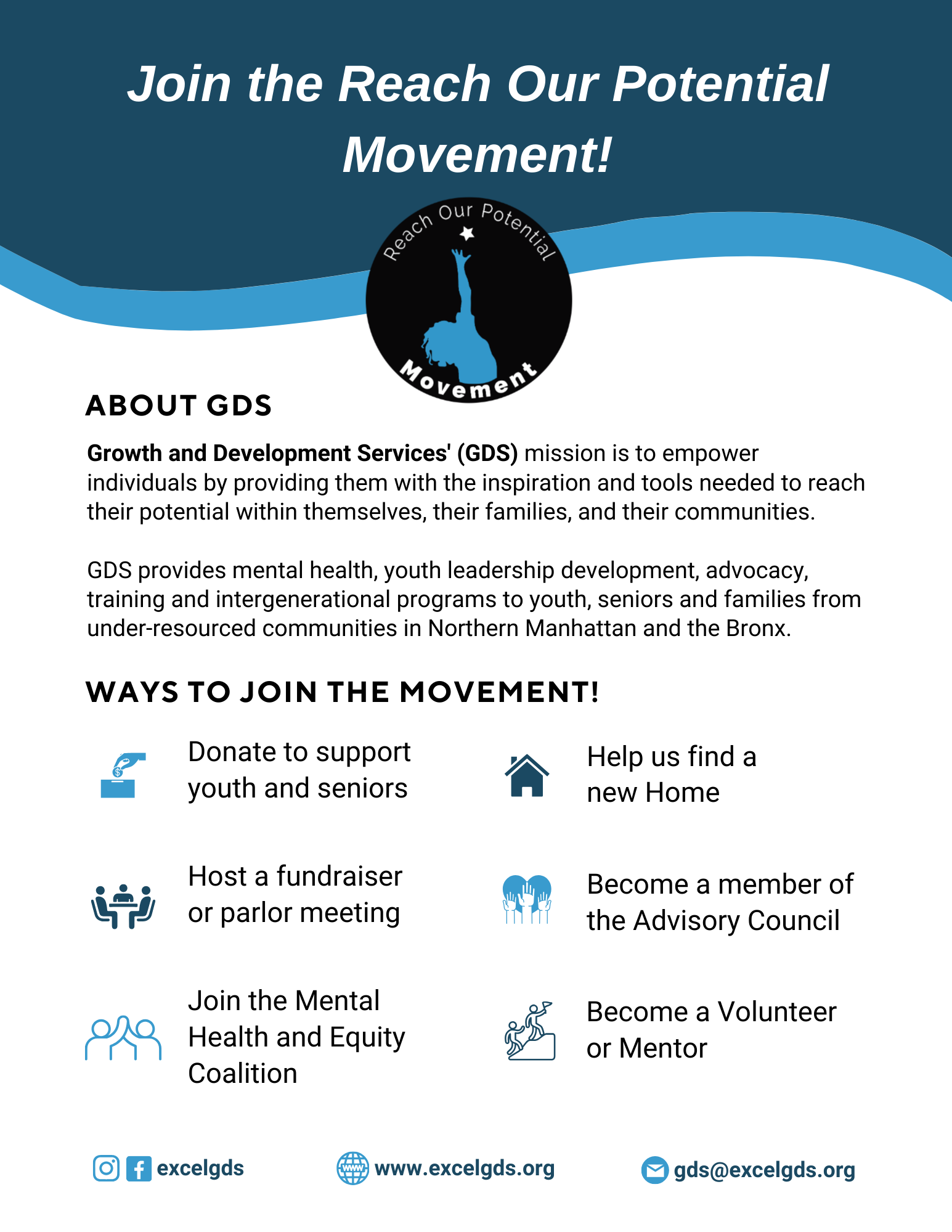 Join GDS in the Reach Our Potential Movement! Help us find a new home to expand youth leadership development, mental health, and intergenerational programs. Your support invests in a future where our youth, families, and community can grow and thrive together.